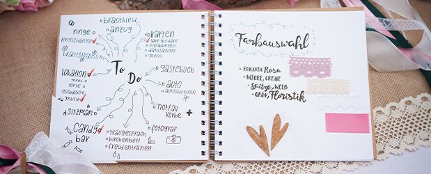 Such a Wedding Planner is not only practical when it comes to keeping track of things - even collages from bridal magazines or fabric and colour samples can be easily collected here! The checklist could also find its own place here