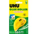 A practical UHU glue roller, non permanent, with a tape length of approx. 8.5 m and a tape width of approx. 6.5 mm. The casing is 100% recycled plastic and the packaging is made of more than 85% recycled cardboard. The Glue Roller is suitable for both right- and left-handed users and is equipped with an integrated cap which serves as a tape protection and standing aid, a display of the remaining tape length and a tape tensioner