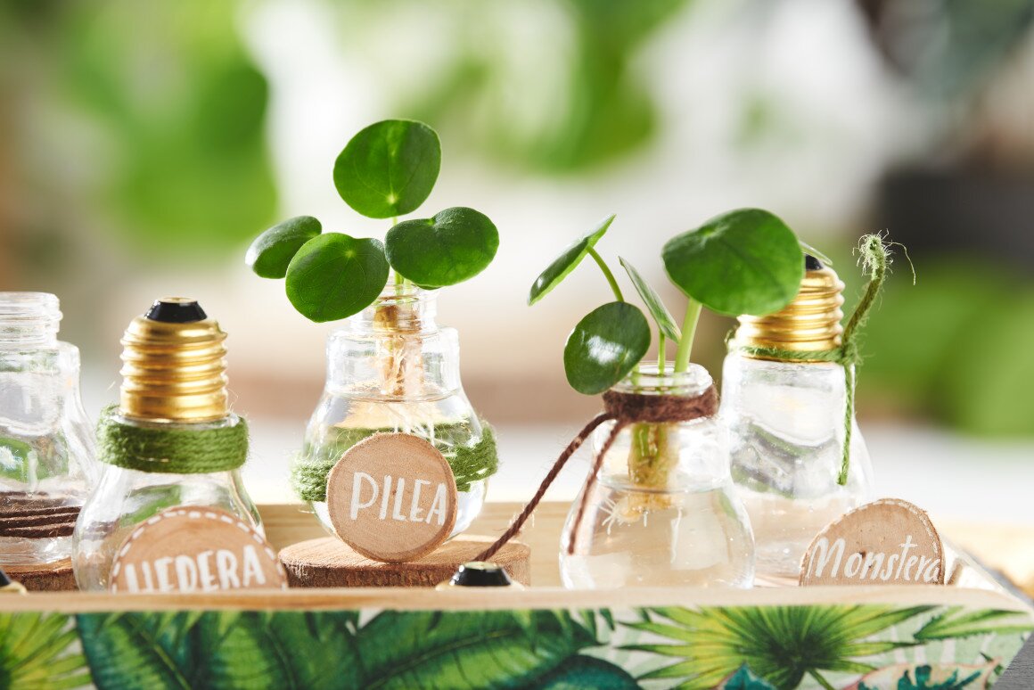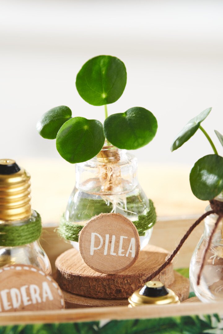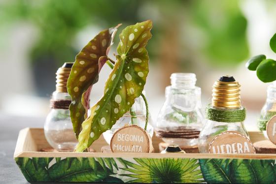Wrap strips of the light bulbs with jute tape. This can be held in place well with double-sided tape or a bit of craft glue.