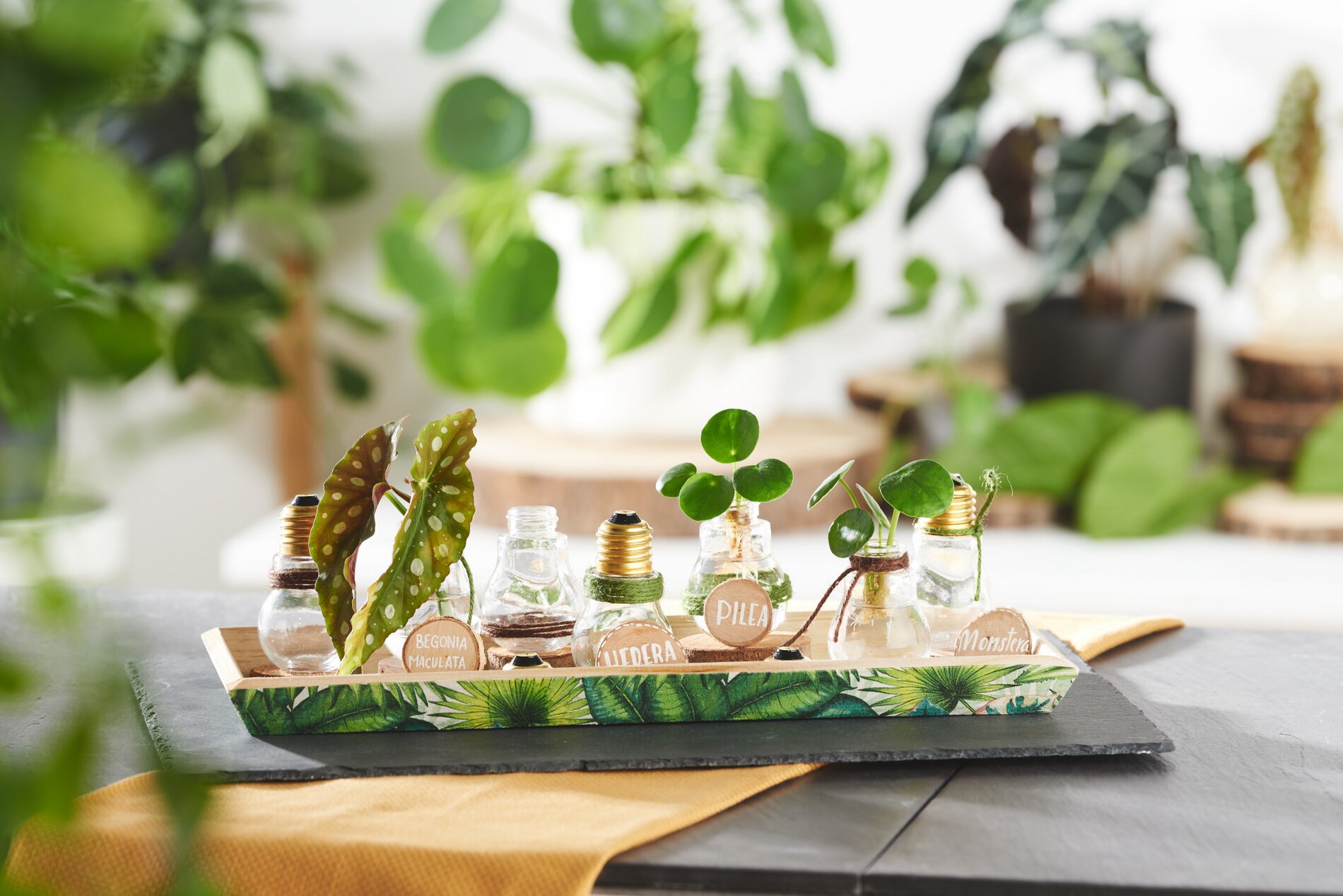 Cut the napkin to size and glue the top printed layer to the wooden surfaces with napkin varnish. This works best with the help of a brush. Remove any overhanging paper on the edge of the tray with a scalpel.