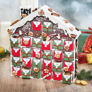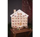The Advent Calendar "Christmas house" has the overall dimensions of approx. height 37 cm x width 36.5 cm x depth 7 cm. The inside dimensions of the two large drawers are approx. 8.5 cm high x 4.9 cm deep x 3.5 cm wide and the inside dimensions of the 22 small windows are approx. 3 cm x 4.9 cm x 3.5 cm.