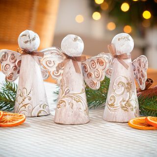 Make your own angel advent calendar with the angels in papier-mâché. With craft colours and Glitter decorated, angel curls on the head and attached at the Small bag bottom to hide the sweetness. Number the angels and you're done Advent Calendar.. Or you can use the angels as Christmas tree decorations, tinker them in Wreaths or arrangements with one or stand alone as table decoration.