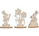 These wonderful VBS Bunnies and daffodils are a set of 3 with a flower motif about 5.3 cm x 8 cm, a standing bun about 3.5 cm x 7 cm and a bunny on an egg about 4 cm x 7.3 cm. The material is high quality poplar plywood.