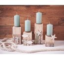An enchanting set in 4 different heights which are perfectly matched to each other. Here, a design with metal colours, Napkin technique, décopatch technique, Chalky Color or handicraft colours is possible. The candlesticks can also be decorated or painted with pretty scattered parts and numbers, so this set becomes an imaginative Advent wreath. Create a wonderful eye-catcher for your living room or an enchanting gift idea