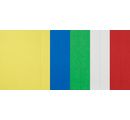 You will receive 10 felt plates of 20 x 30 cm each, 1,5 mm thick, in the colours ultramarine, golden yellow, grass green, white and red.