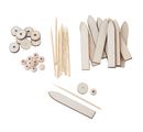 This handicraftVBS set "wooden ski small" consists of 40 pieces. The skis have a length of 6 cm, width 9 mm and a thickness of 2.8 mm. The handicraft set consists of 10 skis, 10 ski poles, 10 Wooden ballsand 10 discs. The set is made of wood and can still be worked with handicraft colours