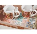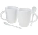 A great set to give as a present and to create individual designs. Two porcelain mugs with spoon holder in the handle.