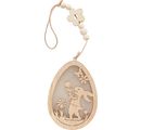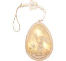Simply magical this VBS Egg pendant with LED "Hasi", backed with a glitter foil for great effects, made of MDF wood and partially veneered plywood. The LED lighting is powered by 2 CR2032 batteries. At the top of the egg is a jute ribbon, wooden beads and a flower. The height with tape is about 32.5 cm.