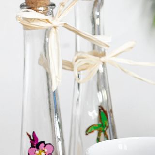 Because of the slim shape of the bottles, they are ideal as a flower vase for stem flowers. Filled with liqueur, soap or simply with decoration-Sand and a flower, they quickly become a great gift idea or a souvenir. With ribbonEmbellishments and beads the glass bottles become a pretty eye-catcher. Lettering or painting with glass paints is also possible. In this way, very individual gifts are created, which you can, for example, give a name, the content or a beautiful motto. Beautiful bottles for your craft or gift idea.