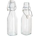 VBS Glass bottles with swing stopper are supplied in sets of 2. The bottles are made of clear glass and have a great square design. The glass bottles are about 19.5 cm high and about 5 cm wide. The filling quantity is approx. 250 ml.
