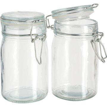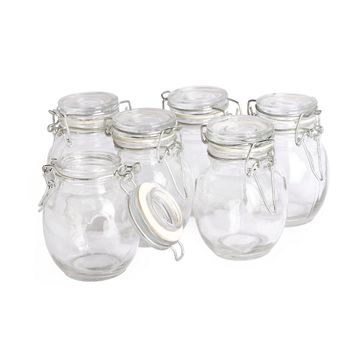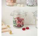Wonderful VBS XXL Jars clip closure "Mini" made of clear glass as an XXL pack in a 12-pack with a Ø of approx. 4.3 cm and a height of approx. 6.3 cm. The opening has a Ø of approx. 3.3 cm. These pretty jars have a swing stopper, a rubber ring as a seal and a filling capacity of approx. 30 ml.