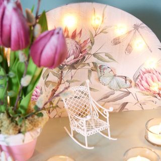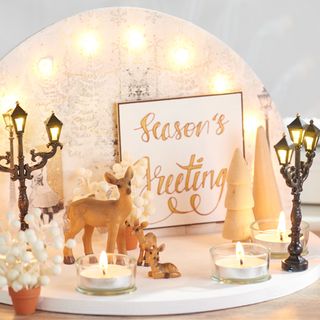The light archis ideal for seasonal decorations. With this LLight archyou can put your decoration in the right light twice. The back wall is particularly suitable for designing with Napkins of the decoupage technique and can be illuminated with a 10er Chain of lights to the 10 holes. This should be fixed on the backside with a small hot glue dot. In addition, there are cut-outs on the base plate for 4 tea light glasses, which provide an atmospheric light and make your decoration shine.