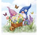 The individual motifs in the set are just as varied as spring itself. The first shows two cute garden gnomes at work, the second a cute fawn in a flowering meadow. The third motif shows two curious squirrels and the fourth a dandelion with numerous flowers. The fifth motif combines various flowers and butterflies to create a blooming ensemble.