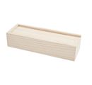 This VBSpencil box with sliding lid is made of untreated raw wood and measures approx. 19.5 cm x 6.5 cm x 4.5 cm. The inside dimension is approx. 19 x 5.1 x 3.5 cm. In the lid of the box is a small recess, so the lid can easily be pushed to the side