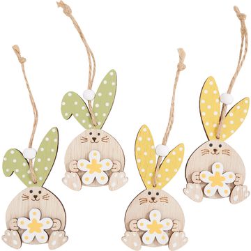 You receive 12 designed bunnies made of plywood, which are provided with a practical adhesive dot. This means you can easily attach them to cards, boxes and gifts or add a magical touch to floral arrangements and table decorations.