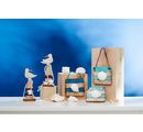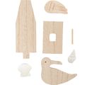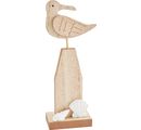 VBS Seagull on bollard with 7 parts to plug in. The material is veneered MDF wood, plywood and two shells of artificial stone for decoration. The size is about 6.5 x 3.8 x 19 cm with a thickness of approx. 1.2 cm. The wings of the seagull and the shells are glued on with craft glue (not included).