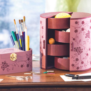 The VBS cabinet with 4 compartments is a real gem for your craft and hobby corner! With its unusual, round design and the 4 practical compartments (inside height: approx. 4 cm), it not only offers a great storage option, but is also a real eye-catcher in your home. The cabinet is made from untreated raw wood and has a diameter of 15 cm and a height of 20.5 cm. This means it fits perfectly on any table or shelf and still offers enough space for your craft utensils, jewellery or other small treasures.
