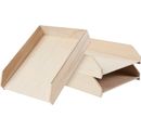 A prima set of 3 VBS Stacking trays in the size of approx. 30 x 23 x 6.5 cm. The 3 stacking trays are stackable with a guide rail for easy backward movement when multiple trays are stacked The material is raw wood. The storage compartments ensure perfect order on your desk and in your documents.