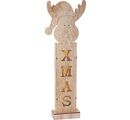 A wonderful VBS standing figure "moose" including lighting. The standing figure has a size of approx. 20.5 x 6 x 61 cm. Illuminated from the inside are the letters XMAS, which are underlaid with a glitter foil. In the base hides a battery compartment for 2 AAA batteries, which are not included. The material of the figure is high quality plywood with veneered fronts. The pre-drawn eyes and pre-milled lines on the face make painting easy.