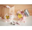 Also available as Gift wrapping for cookies, sweets or other nice things these glasses are perfect. An individual design with colours, Napkin, labels and colourful Bedit is always possible with glass. A nice glass with coloured sweets, nicely made up is always good for a surprise as a souvenir!