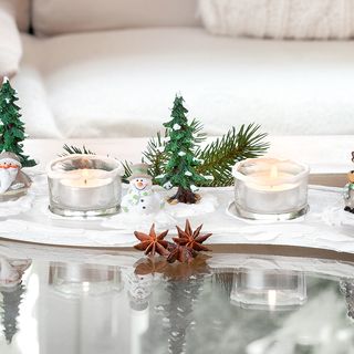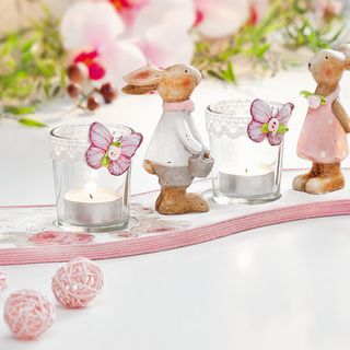 This Tealight holders can be designed to suit every season due to its beautiful and simple design The plate is harmoniously curved and has 4 cut-outs for tea light glasses, for example, article #684705 is suitable, so you can also create it as a Christmas or Easter arrangement. Just put some floral elements in the gaps and decorate with ribbons.