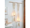 The glass is also wonderfully suited as a hanging basket in conjunction with Macramé. With different knots and hung at different heights, an eye-catcher for the living room or the terrace. With fairy lights, small succulents or LED tea lights you get a shiny atmosphere.