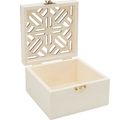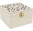 VBS Wooden box "Ornament" with a size of approx. 10 x 10 x 6 cm. Inside size approx 9 x 9 x 4 cm, lid inside size 9 x 9 x 1.4 cm. The material is high quality plywood with a beautifully crafted floral ornament in the lid.