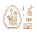 You are looking for a unique gift for Easter? Then our VBS Wooden building kit egg pendant "Bunny with egg" is just the thing for you! With its 7 parts made of plywood, a garden fence, a bunny, an egg and a flower, it is a beautiful decorative element for hanging, which you can design according to your wishes.