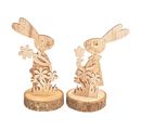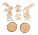 The motifs consist of rabbits with flowers on bark discs. The individual plug-in parts and decorative elements are fixed with handicraft glue (not included). The product is unpainted and decorated on one side. The diameter of the bark disc is 8 cm and the total height is 17 cm. These building kits are a beautiful decoration and a unique gift that will delight your loved ones. It's a great way to unleash your creativity and have a creative time.