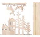 Measuring 18.5 cm high and 24 cm long, it provides the perfect backdrop with fir trees and little houses, while a deer and a majestic stag can be seen in the foreground. The plywood parts veneered on both sides are not only robust, but can also be customised in a variety of ways. Whether with colours, colour pastes, papers or glitter - there are no limits to your creativity. Simply decorate the motif as you wish, put it together and fix it with a little handicraft glue (not included) if necessary. Ideal for your winter decorations or as a creative craft project.