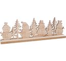 This building kit consists of two parts that you can simply plug together. It shows snowmen and fir trees and is decorated on one side. The predefined lines make you decorating easier and the cute faces conjure up a smile on every viewer's face. With a width of 4 cm, a height of 10 cm and a length of 30 cm it is a real eye-catcher. It is made of plywood and MDF wood and has a thickness of 4.6 mm.
