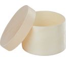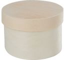 The wooden chip box is round, has a diameter of approx. 6 cm and is approx. 4 cm high.