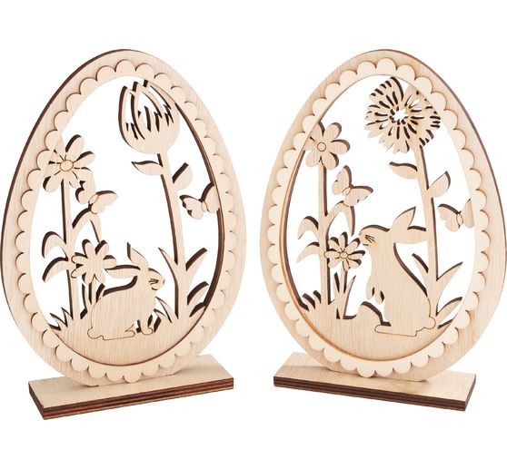 You can paint, stick or decorate the Easter bunnies individually. They look particularly beautiful as window or table decorations. For a simple look, you can leave out the playful frame and draw an eye on the bunny with a black pen. These versatile wooden eggs are made from veneered plywood and decorated on one side, giving you the freedom to add your own creative touches.
