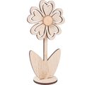 Beautiful VBS wooden flower "Lola" with a height of approx. 26 cm. The material is veneered plywood. The stand can be easily attached to the flower and has a Ø of approx. 7.7 cm. The flower is decorated with a small tree slice as a pistil on one side.<bold/>