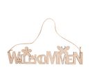 Greet your guests with the VBS Wooden hanger "Willkommen" and create a unique and personal welcome greeting. The hanger is made of poplar plywood and is 7 cm high and 29 cm long. It is decorated on one side and consists of the lettering "Willkommen" and three small flowers, which are enclosed loose and can be glued on with handicraft glue (not included).