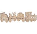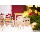 VBS Wooden silhouette "Christmas Train" with a length of about 47.5 cm, height 12 cm and thickness about 0.5 cm. The train is decorated on one side. The individual cars are connected with hinges made of metal.