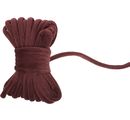 Great velvet cord with a Ø of about 7 mm and a length of about 8 m. The material consists of 100 % polyester. It is washable to 30 °C delicates. Inside it is provided Ribbon with a soft, textile filling. The cord does not bleach out, does not stain and is therefore perfectly suitable for outdoor use.