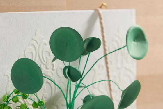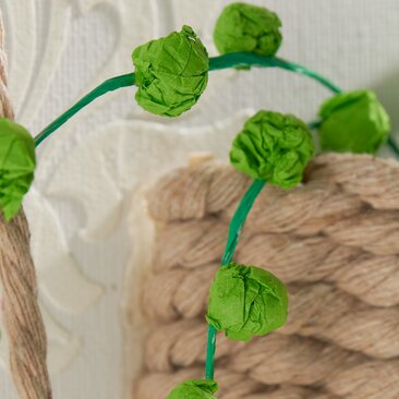 Cut a few pieces of the paper wire, paint them with green paint from the marker pen and glue the wire to the paper leaves as "plant stems".