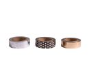 You can create individual craft projects with the Washi Tape Set "Gold/Silver Foil"! The high-quality washi tape is self-adhesive and made of paper. Each pack contains three rolls in different designs, each with a width of 15 mm and a length of 10 m.