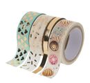 The Washi Tape Set 'Hot Foil" is a pretty set consisting of 4 enchanting tape rolls in Mint / Gold with hot foil finishing. All rolls have a length of 5 meters. The width is 3 x 15 mm and 1 x 5 mm. This is a self-adhesive motif ribbon-paper.