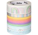 The wonderful Washi Tape Set "Hot Foil Rainbow" should not be missing in any craft box. You will receive 4 rolls with a width of approx. 15 mm and 5 mm. The length is approx. 5 m.