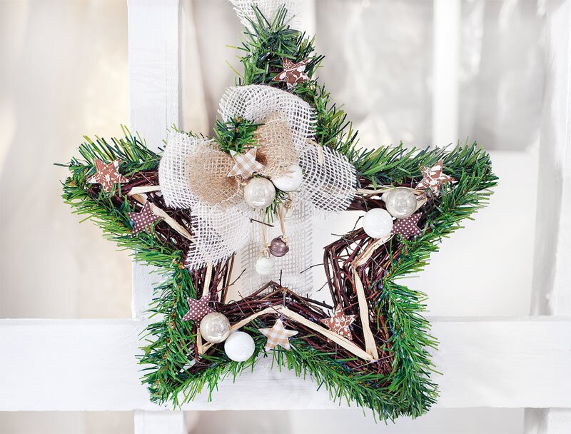 Decorate the willow star with other accessories such as Christmas Balls and stars - simply stick them on with hot glue.