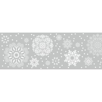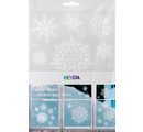 The window stickers "Crystals" are made of transparent plastic, printed with white glittering snow crystals. Through the plastic foil the stickers stick to glass and mirror as if by magic. You will receive 3 sheets of DIN A4, on them are 48 stickers, with a Ø of about 1 cm to 12 cm.