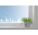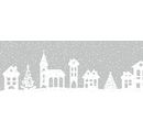 Wonderful Window Tape "Christmas Village" with approx. 2 m length and approx. 7.6 cm width. The self-adhesive tape shows a Christmas village in white. The motif size is approx. 2.0 x 2.6 cm to approx. 3.8 x 5.6 cm