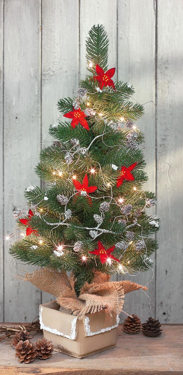 This bright fir tree with its lovely details is a wonderful winter decoration. The cone garland and the decorative snow create a wintery ambience while those out are getting in the mood for Christmas stars Felt Christmas