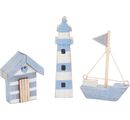 Set maritime accents in your home with the Wooden decoration set "Maritime" and dream yourself away to the most beautiful beaches in the world. Three lovingly painted motifs - a boat, a lighthouse and a house - can be perfectly combined with each other and add a fresh breeze to your decorations. Measuring between 6 and 10 cm in height, the wooden figures are ideal for use on a windowsill, table or shelf.