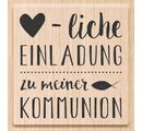 A great stamp "Herzliche Einladung Kommunion" to put invitation cards for the communion in the right light. With this you will certainly not receive any refusals. The total size is approx. 5.5 cm x 6.0 cm, the motif has a size of approx. 5.3 cm x 5.3 cm. Made of wood.
