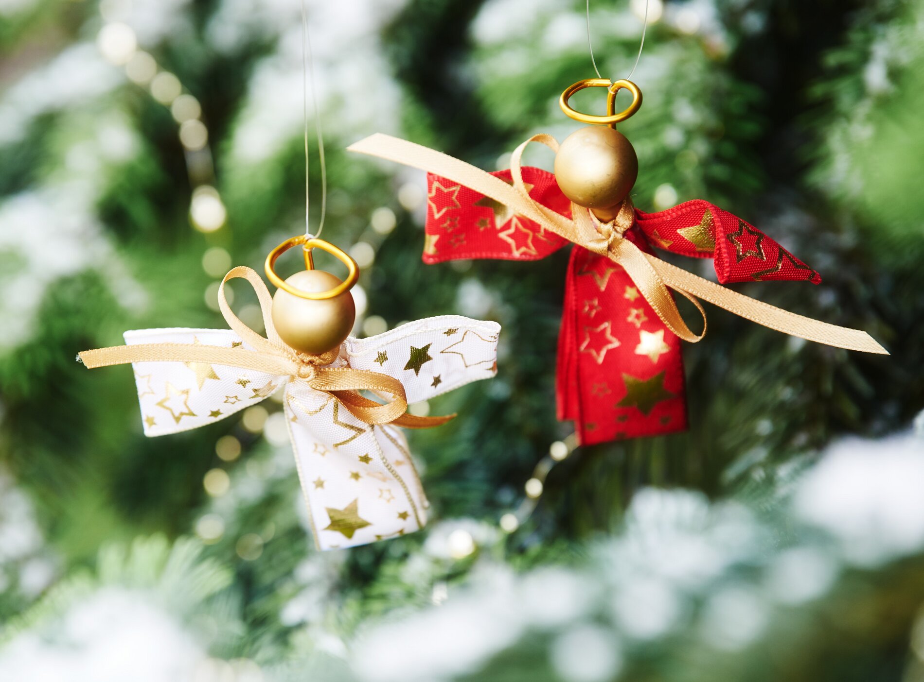 Na každého anděla budete potřebovat 2 kusy stuhy, jeden o délce 10 cm a druhý o délce 15 cm.