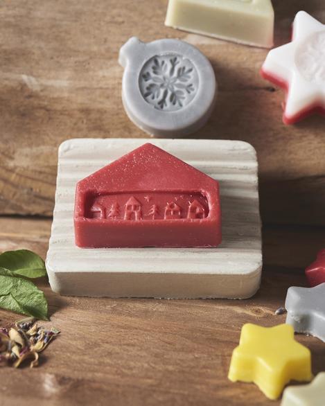 reliéfní vložky pro pěkný vzhled povrchu. V závislosti na použité barvě a vůni a reliéfní vložce můžete vytvořit velmi jedinečná mýdla.