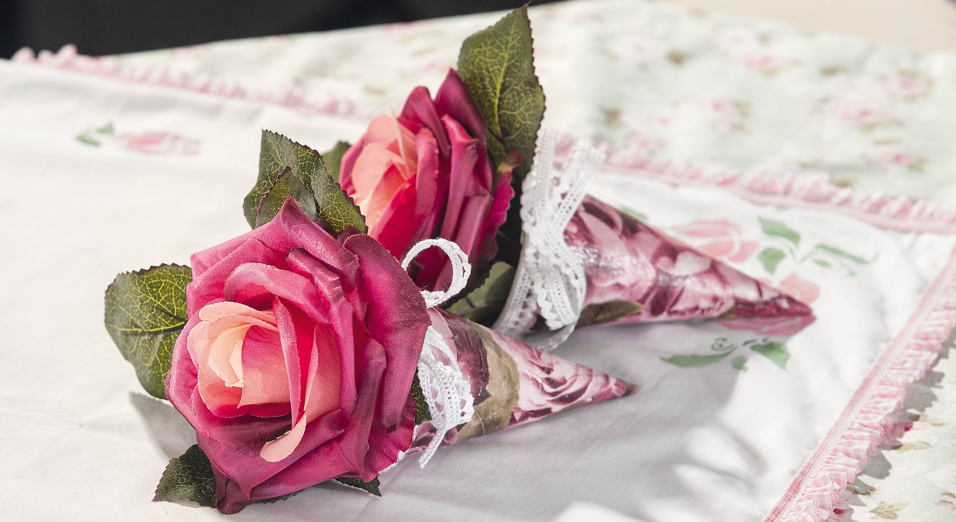 Nakonec přilepte paličkovanou krajku kolem okrajů šišek pomocí pásky a ozdobte uvnitř jednu velkou květinu.